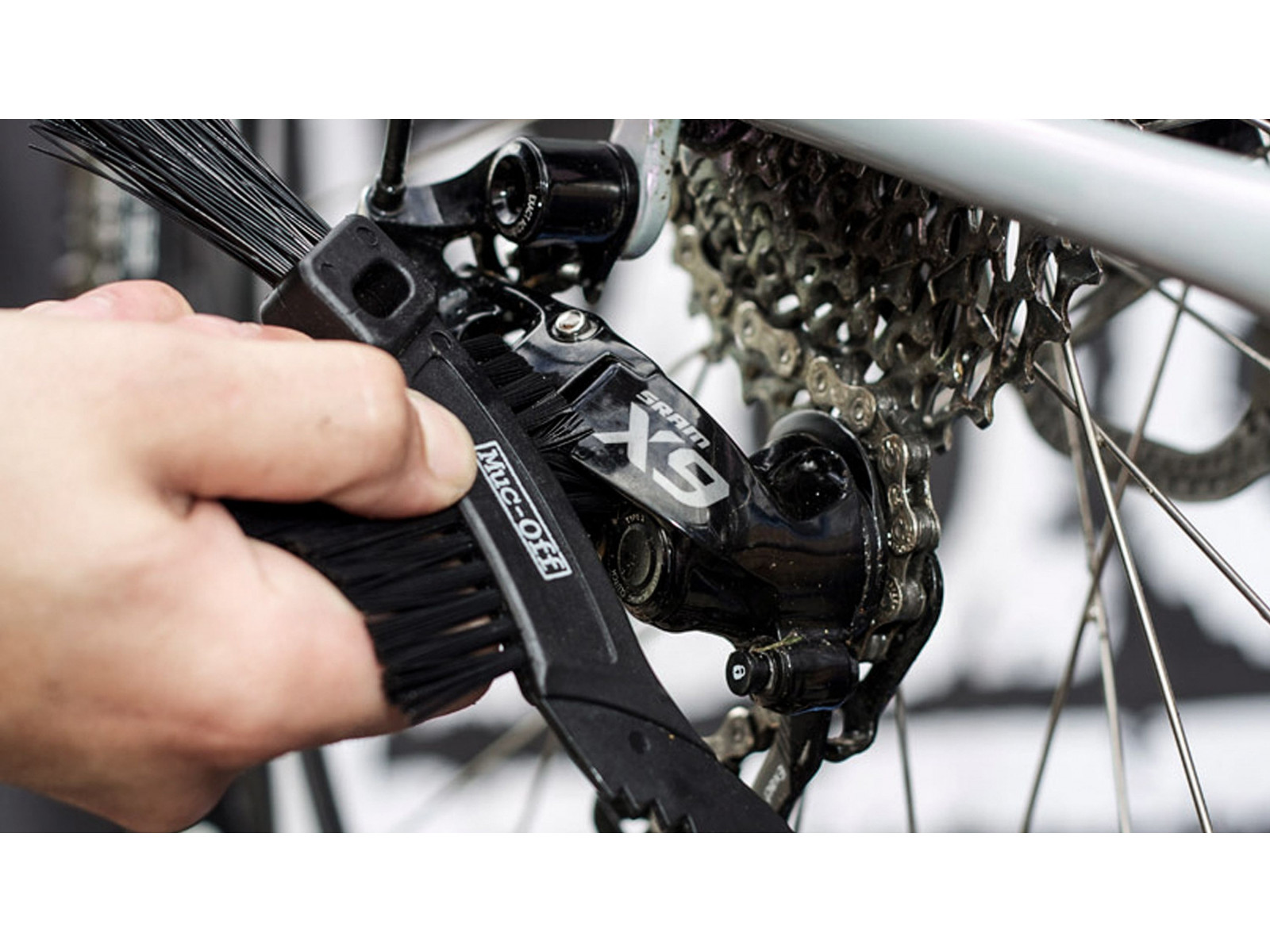 The Muc-Off Claw Brush boasts a high quality construction with three brush heads that feature tough nylon bristles and an integral scraper for mud de-clogging. It’s perfect for cleaning your bike’s chain, cassette, mechs and sprockets.