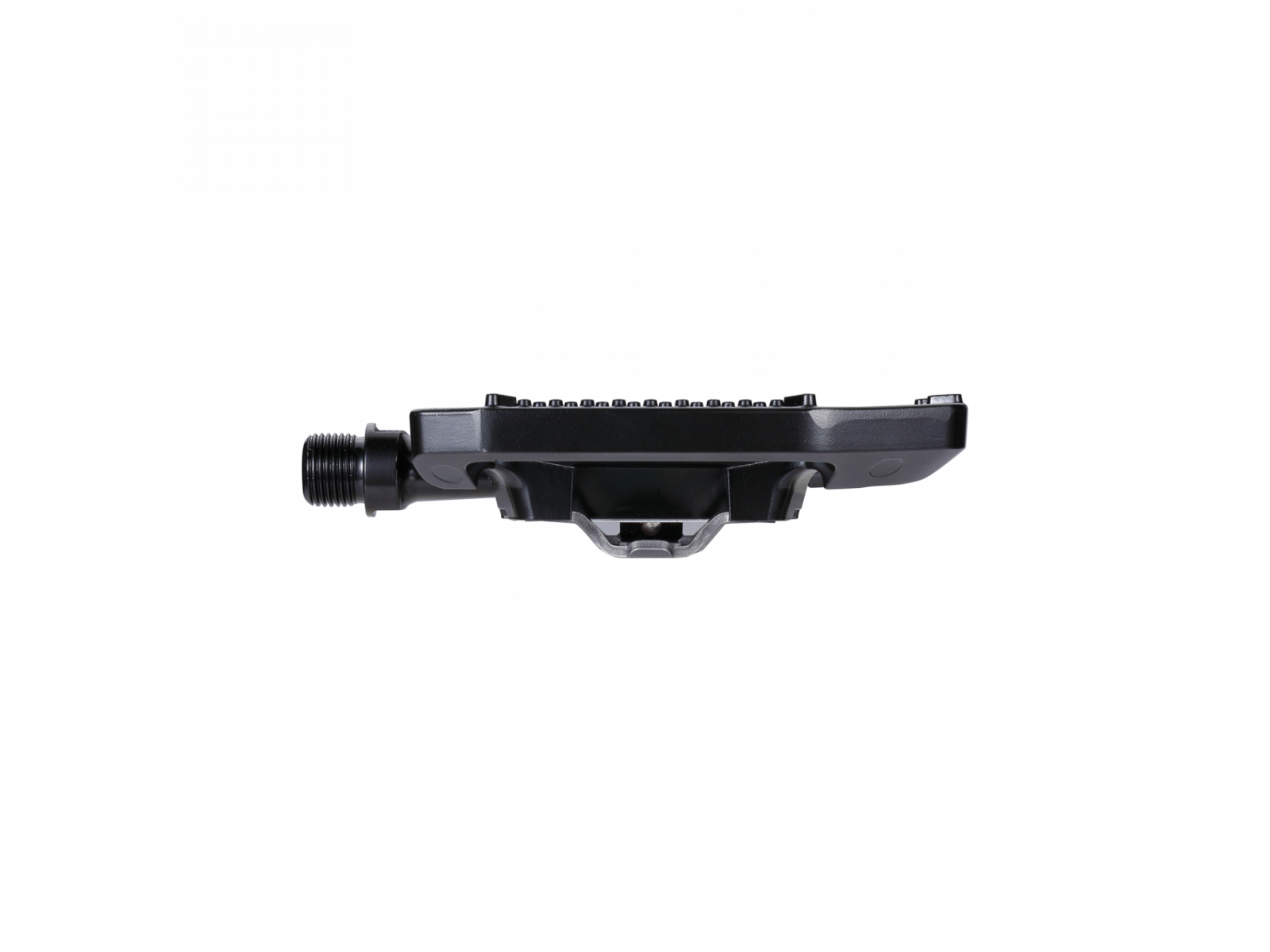 - Pedal with two functions. One side SPD compatible click mechanism, other side equipped with anti-slip aluminium cage for street shoes.