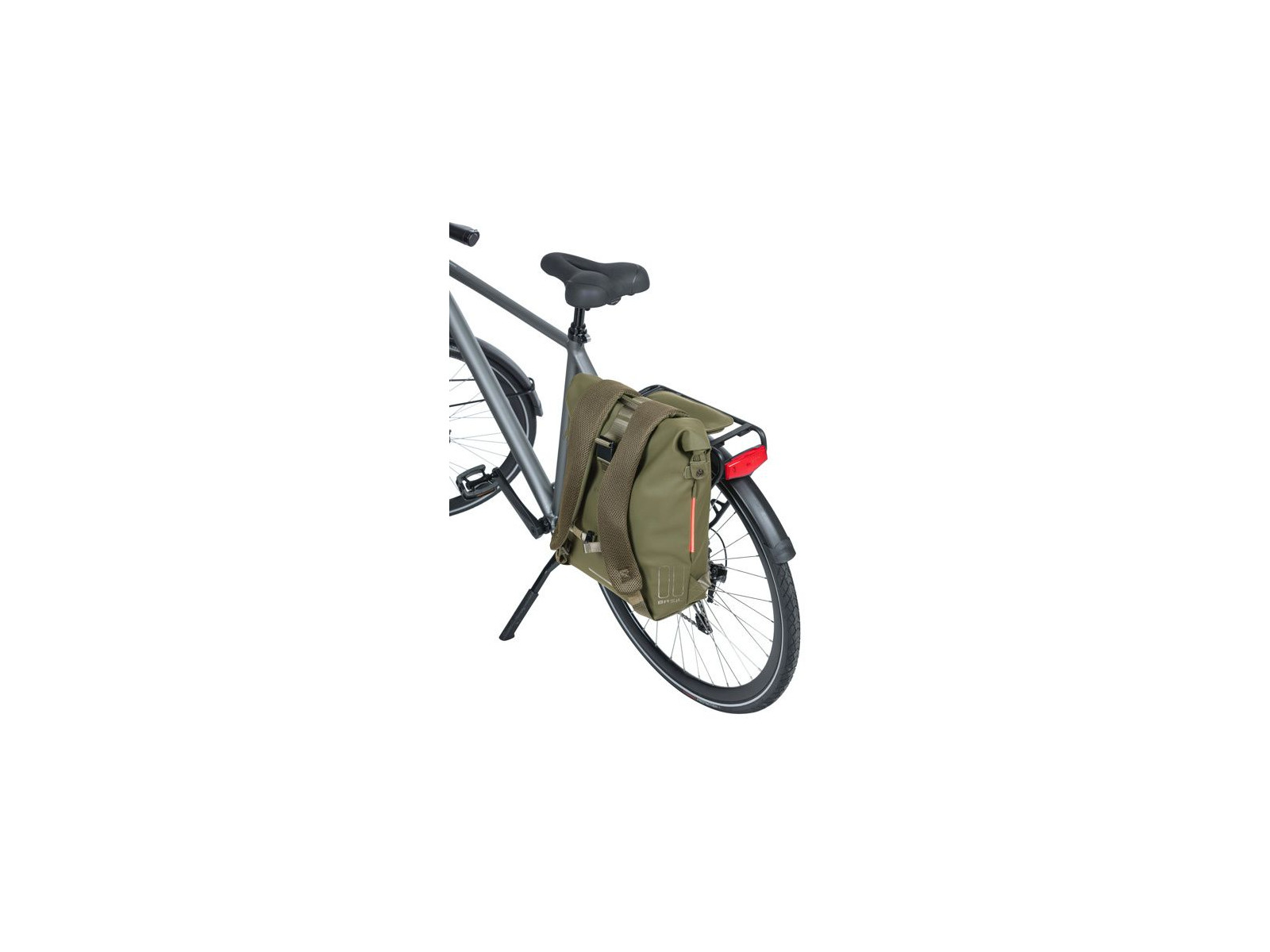The Basil SoHo bike backpack Nordlicht is a modern backpack with a wide range of smart features. This bag is a backpack and a rack in one and can be easily attached to the rack. The bag has a built-in LED strip that makes you more visible in the dark. The bag is also waterproof (IPX3). Capacity 17 litres.