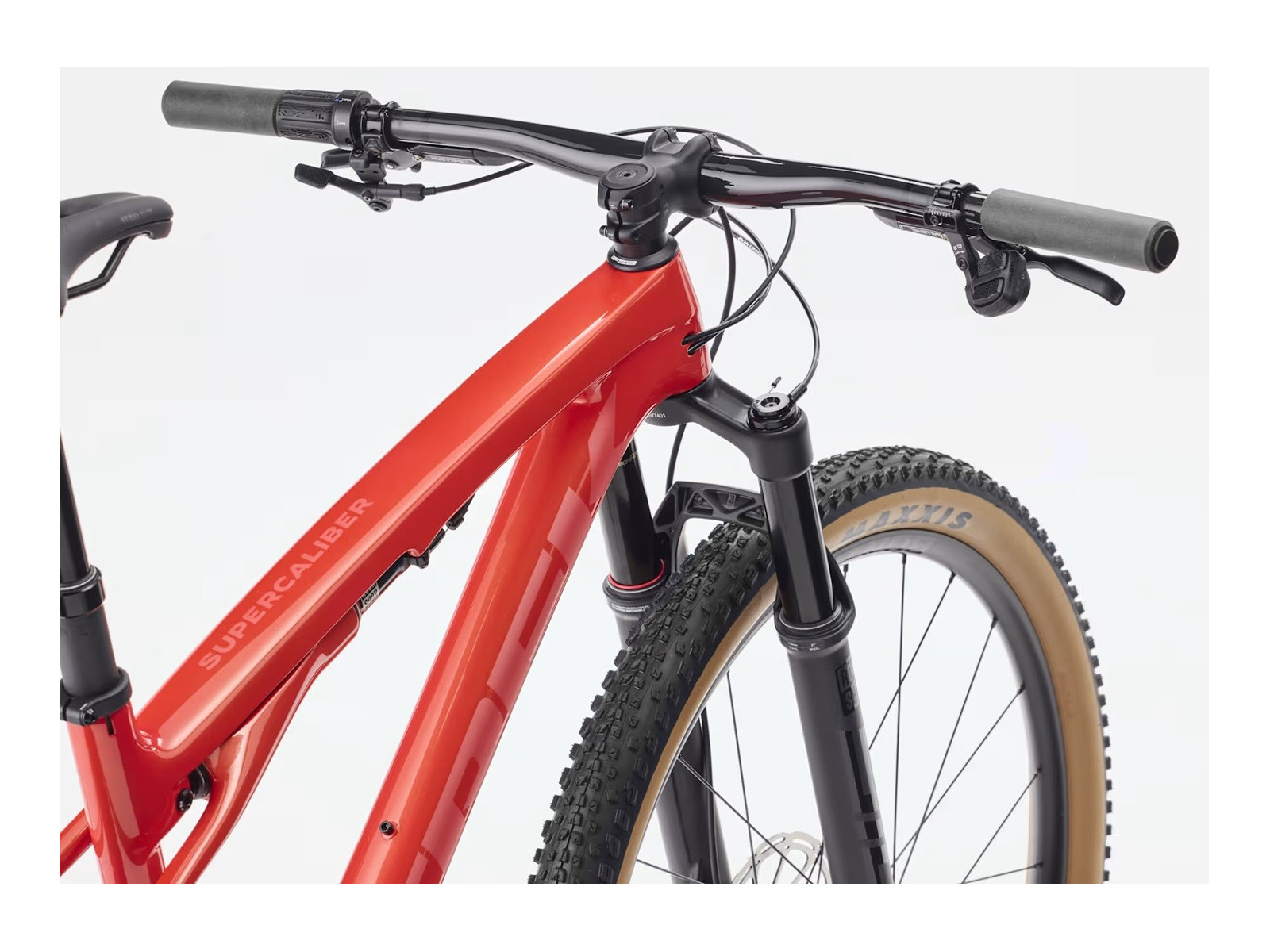 The Supercaliber SL 9.7 GX AXS is an ultralight carbon XC mountain bike that's ready to lay down rubber on race day. Its SL OCLV Mountain Carbon frame is as light as it is meticulous, with a high modulus lay-up that gives you all the stiffness you crave, and none of the weight. XC courses get rowdier every year, so it's equipped with a 110 mm fork and 80 mm of IsoStrut rear suspension to smooth your roll without kicking pedalling efficiency to the wind. It's all topped off with a carbon cockpit and SRAM's wireless GX AXS Transmission.