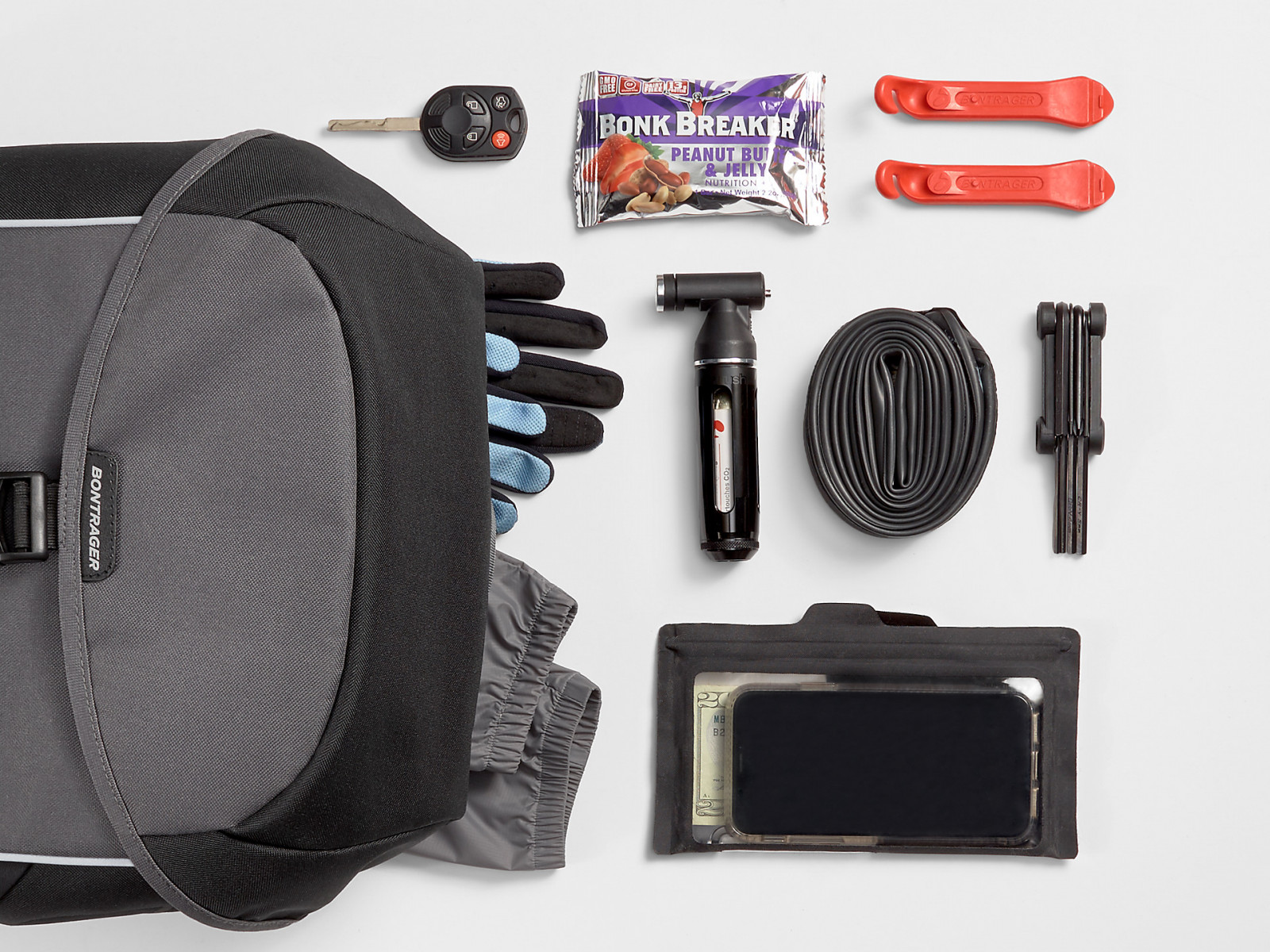 • Padded handle and adjustable carrying strap for convenient off-bike use