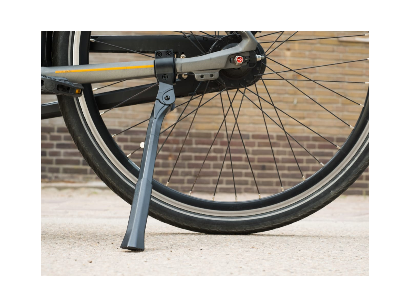 - Kickstand with universal clamp mount and adjustable length
