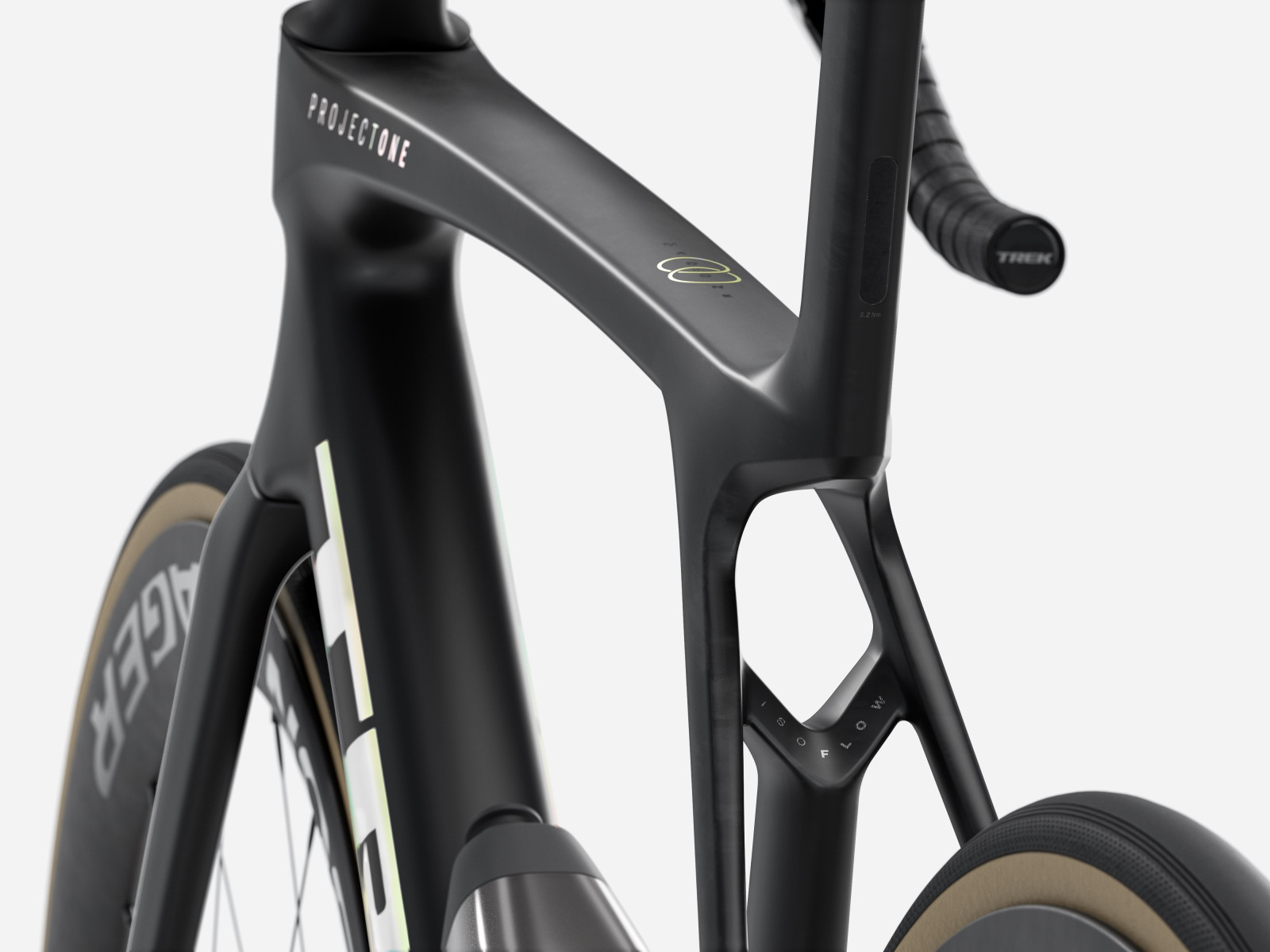 - Madone Gen 8 one-piece carbon, tapered carbon steerer, internal brake routing, flat mount disc, 12x100mm chamfered thru axle
