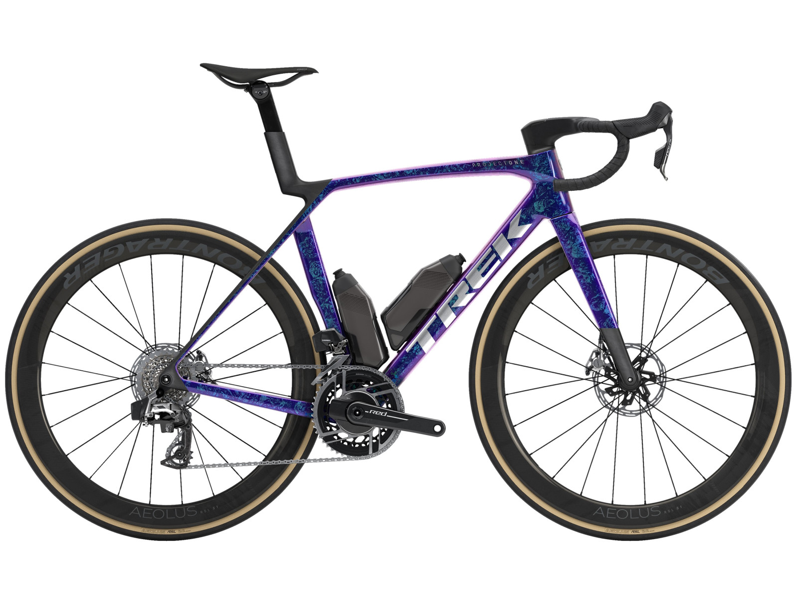 Madone SLR 9 AXS Gen 8 sukurtas taip, kad keliuose dominuotų tiek lengvumu, tiek aerodinaminikos savybėmis. Rėmas pagamintas iš mūsų aukščiausios klasės 900 Series OCLV Carbon, kuris yra neįtikėtinai lengvas ir suformuotas aerodinaminėmis linijomis, leidžiančiomis maksimaliai išnaudoti greitį tiek nusileidimuose, tiek tiesiosiose atkarpose. Ši komplektacija paruošta pergalei: SRAM RED AXS E1 pavara su galios matuokliu, Bontrager Aeolus RSL 51 anglies pluošto ratai, Trek Aero RSL vientisa anglies vairo/iškyšos sistema ir RSL Aero gertuvės su laikikliais dar mažesnei oro pasipriešinimui.