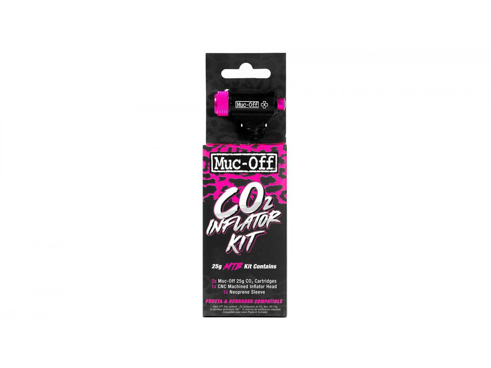 Katrā komplektā ir 2gab. 25g CO2 kārtridži, kompakta un izturīga pumpja galviņa ar pogu, kas viegli kontrolē CO2 izdalīšanos un ir savietojama ar Presta un Schrader ventīļiem.