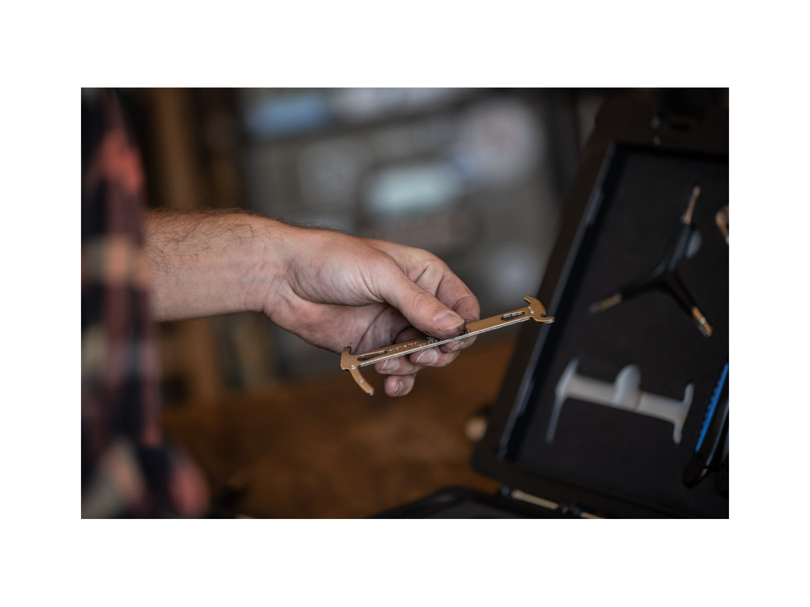 The integrated chain hook holds links during assembly. Furthermore, the ChainChecker features integrated valve tool and 5/6/8mm hex wrench.