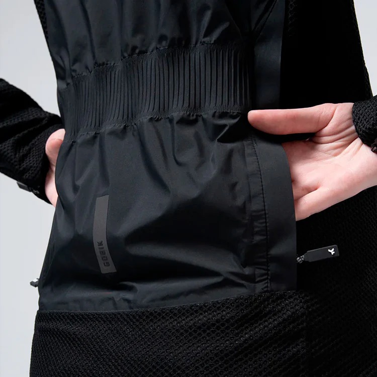 Aizmugurē ir integrēti divi plati rāvējslēdzēju atvērumi, kas ļauj viegli piekļūt iekšējām kabatām pat ar cimdiem. Iekšpusē izvietotas divas sieta kabatas, lai nepieciešamās lietas būtu pasargātas no laikapstākļiem