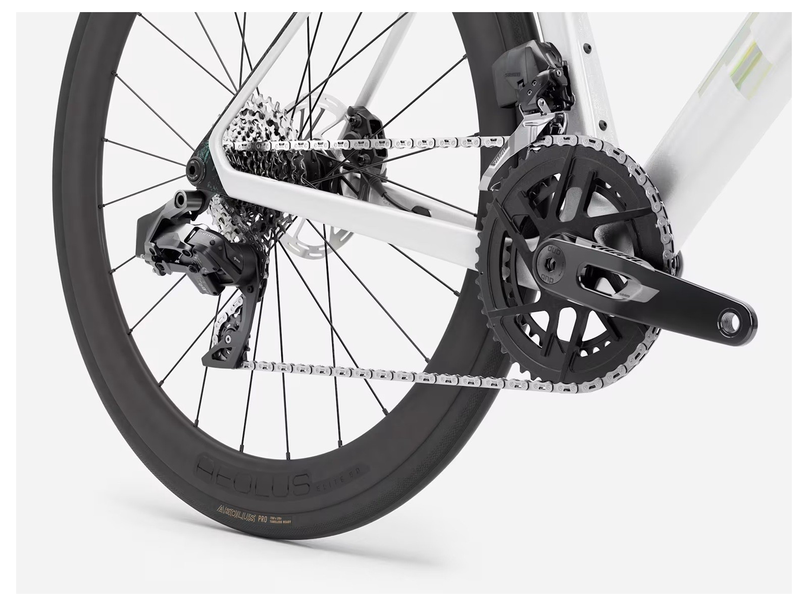 Madone SL 6 AXS Gen 8 ir viegls aero šosejas velosipēds, kas piedāvā elites sacīkšu tehnoloģijas par zemāku cenu ar ekonomiskāku OCLV 500 oglekļa šķiedras materiālu nekā tā SLR brālis. SRAM Rival AXS E1 elektroniskā grupa nodrošina zibenīgi ātru elektronisko pārslēgšanu un ir aprīkots ar alumīnija stūri, lai saglabātu zemu cenu. Turklāt tas ir papildināts ar oglekļa šķiedras riteņiem īpaši efektīvai braukšanai.